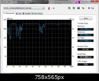 Wenn man genau hinsieht (oder zum Vergleich das Programm mal über eine normale Platte laufen lässt) dann sieht man unten die gelbe Linie. Das ist der Random Access auf die HD. Die Intel ist auch bei allen Benchmarks die Langsamste aber beim Random Write die Ungeschlagene.Zum Vergleich, die alte Systemplatte: